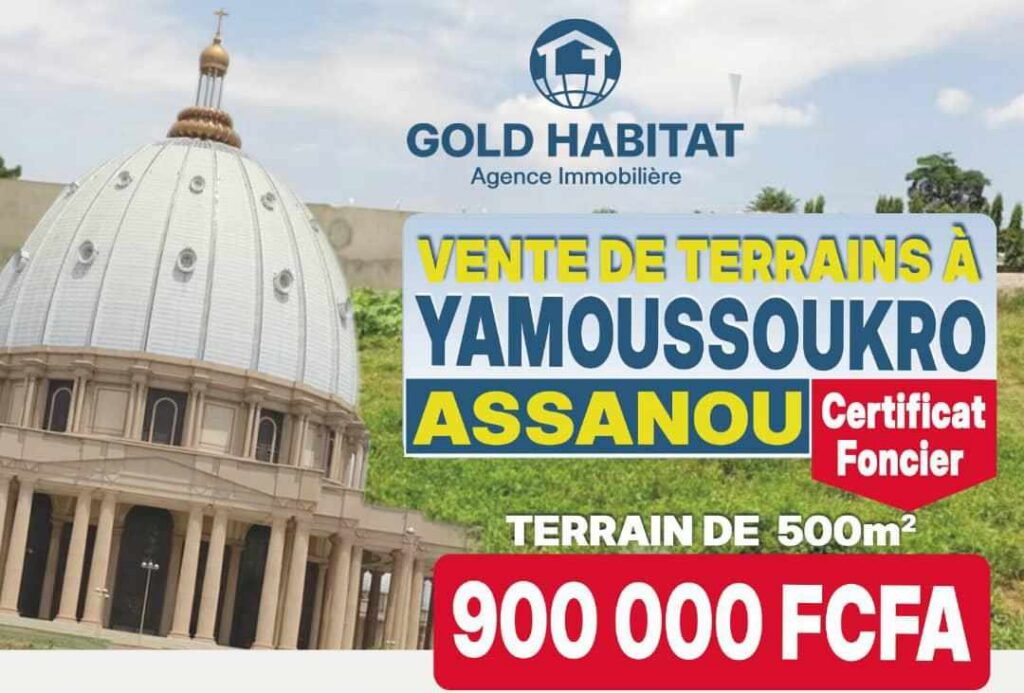 Localisation : Yamoussoukro Superficie / Type : 500 m² Offre de lancement: 900 000 FCFA (50 % à la réservation + 50 % sur 3 mois) Statut foncier : Certificat foncier rural en cours d’exécution Contact : 07-78-12-26-24